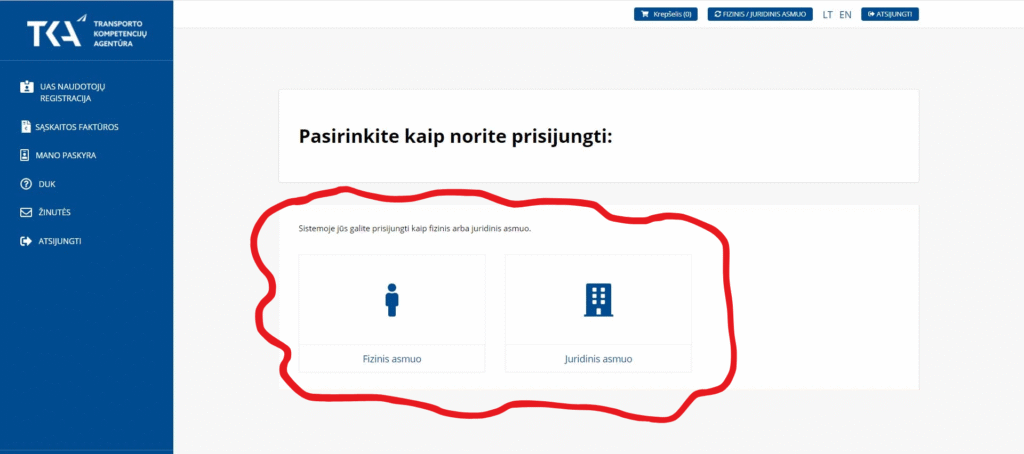 - Jei registruojiesi kaip privatus asmuo → rinkis fizinis asmuo.