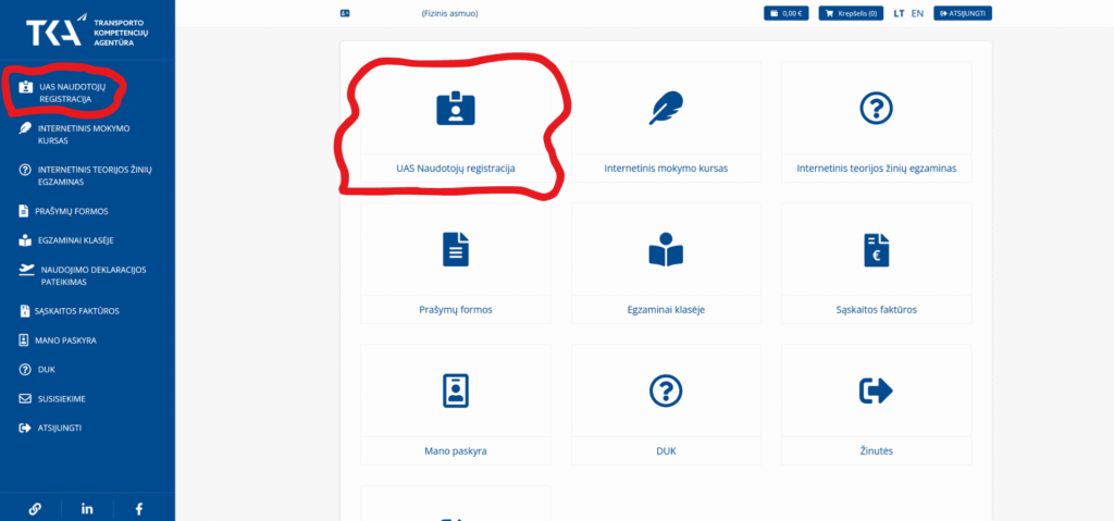 - Eik į [TKA UAS sistemą] (įdėk nuorodą).