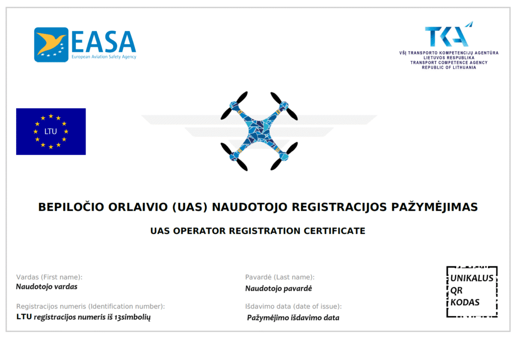 Čia rasi žingsnis po žingsnio gidą, kaip užregistruoti droną TKA sistemoje.